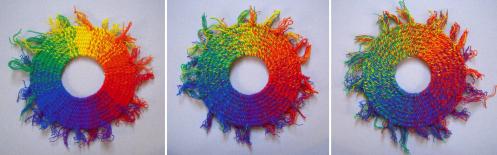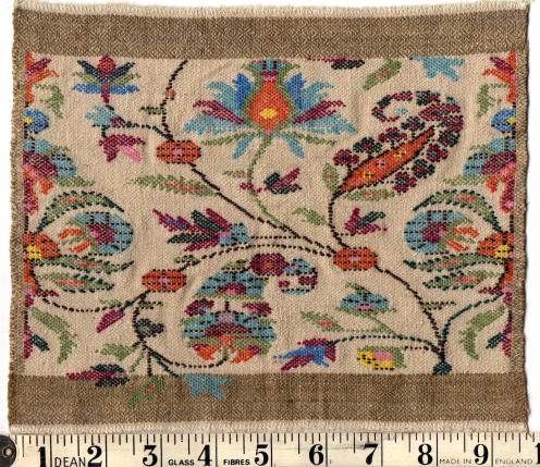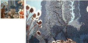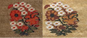 Stitch Painter allows a continuous-tone image to be copied and pasted onto the grid, reducing it to a chosen number of colours. How much handwork this saves depends on the alignment of the fabric, the quality of the photograph, and a careful estimation of the matching numbers of rows and nals of the grid. Ultimately the degree of precision expected of row-by-row, step-by-step, interlocking instructions will require every detail to be checked by hand and eye.