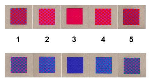 To begin, I prepare a blank brick-grid document with provisional dimensions of the expected number of nals in width and twice as many rows to cover the same extent lengthwise. Each brick-grid unit is one-half the height (representing 2 picks), compared to its width because it is spanning 4 warps (the 2 which were raised and the 2 which were not). Then I’ll make a selection of colours similar to the original fabric but easy to distinguish from each other. My completely self-contained work station on-screen shows enough of the grid to work on and enough of the fabric photo to compare it with. A good place to start would be anywhere the threads appear orderly: the warps not skewed, the wefts not undulating, the twill grain running straight, threads of uniform thickness, and other design details nearby to connect to.