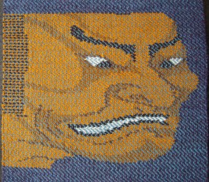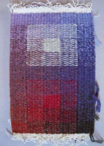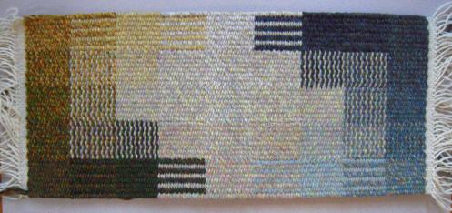 The design or motif displayed on a kani-woven fabric is the result of the conversion of a drawing into precise digital instructions that correspond to the weaver’s way of working. As a tapestryweaver in a different tradition, I knew the information I needed was the colour and the extent traveled by each weft in succession across the width. I have always had a strong sense of the grid structure of plain-weave tapestry, as well as weaving in general. In tapestry it is a matter of getting the right colour of weft in each location in the grid, to display the design and to hold together as a piece of cloth.