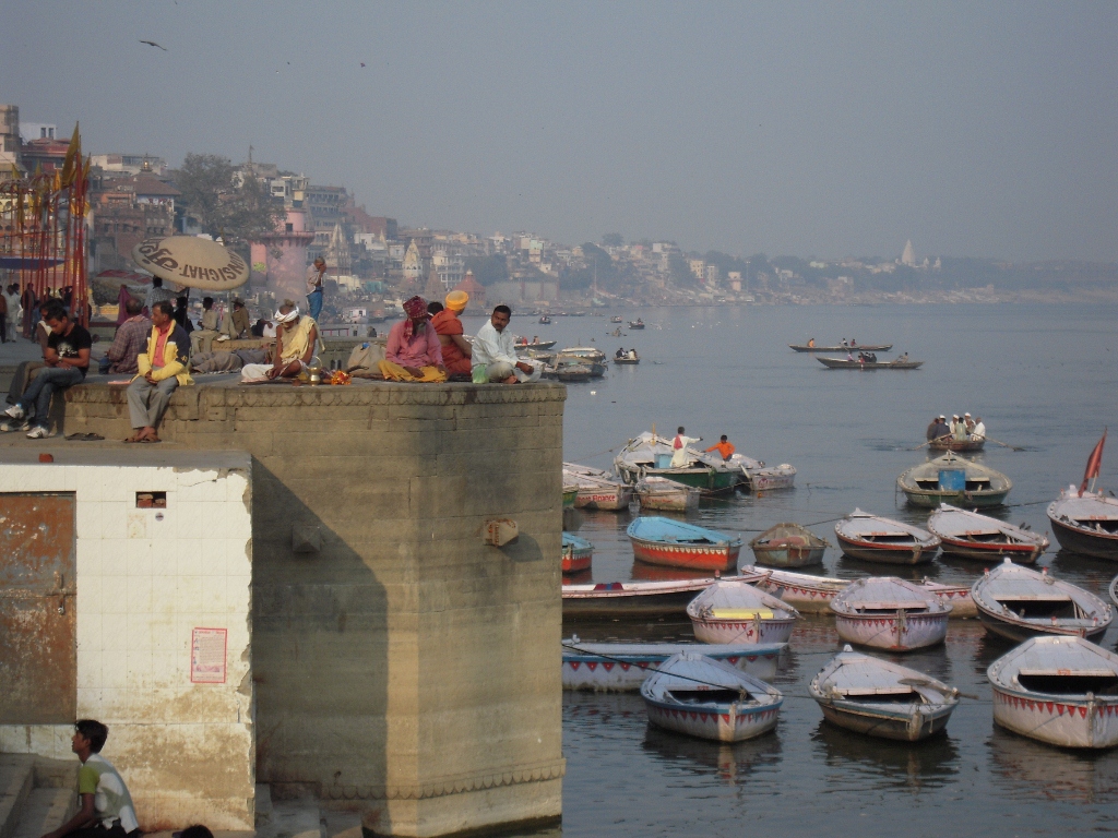 Traversing the ghats at Varanasi yesterday, either on foot or by boat, leaves me in a subdued and introspective mood. On the one hand it is wonderful to join the escape from the cacaphony of road traffic, and ponder the timeless and holy symbolism of this place. Still, one can’t escape the crowds and competing agendas – the handpainted advertisements on the sides of the holy men’s plinths, or the cricket-playing youths and importuning boatmen. At dawn and dusk the steps are jammed with people absorbed in the widest range of social or intimate activities, bathing, promenading, reclining, gawking, doing business. In a country of a billion people, there is no place without either history, sacred significance, or passers-by. The habit of averting ones eyes, and expecting others to do likewise, is not just a personal affectation of the shy, but a necessary coping mechanism and a social convention. Foreign tourists, rare quarrelling, and other strangenesses disturb the balance, especially for opportunistic bystanders, but the mark of fitting-in is to pass unnoticed, merging with traffic. In spite of obvious differences, a sense of the common and normal – the reassurance that shared expectations make difficulties communicating momentary and trivial. Travel as a process of discovering not differences but similarities – the same aspirations worked-out under circumstances more adverse or advantageous – hotter or colder, richer or poorer, more harmonious or competitive.