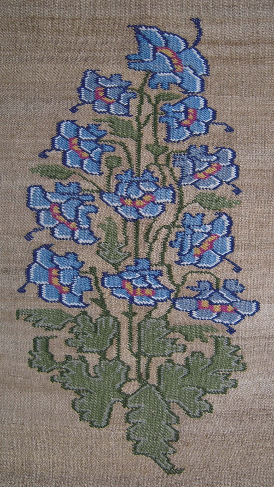 With some small modifications and discrepancies, I would like to unveil my re-creation of a beautiful 17th-century Kashmir shawl motif, a sprig of columbine flowers (aquilegia).