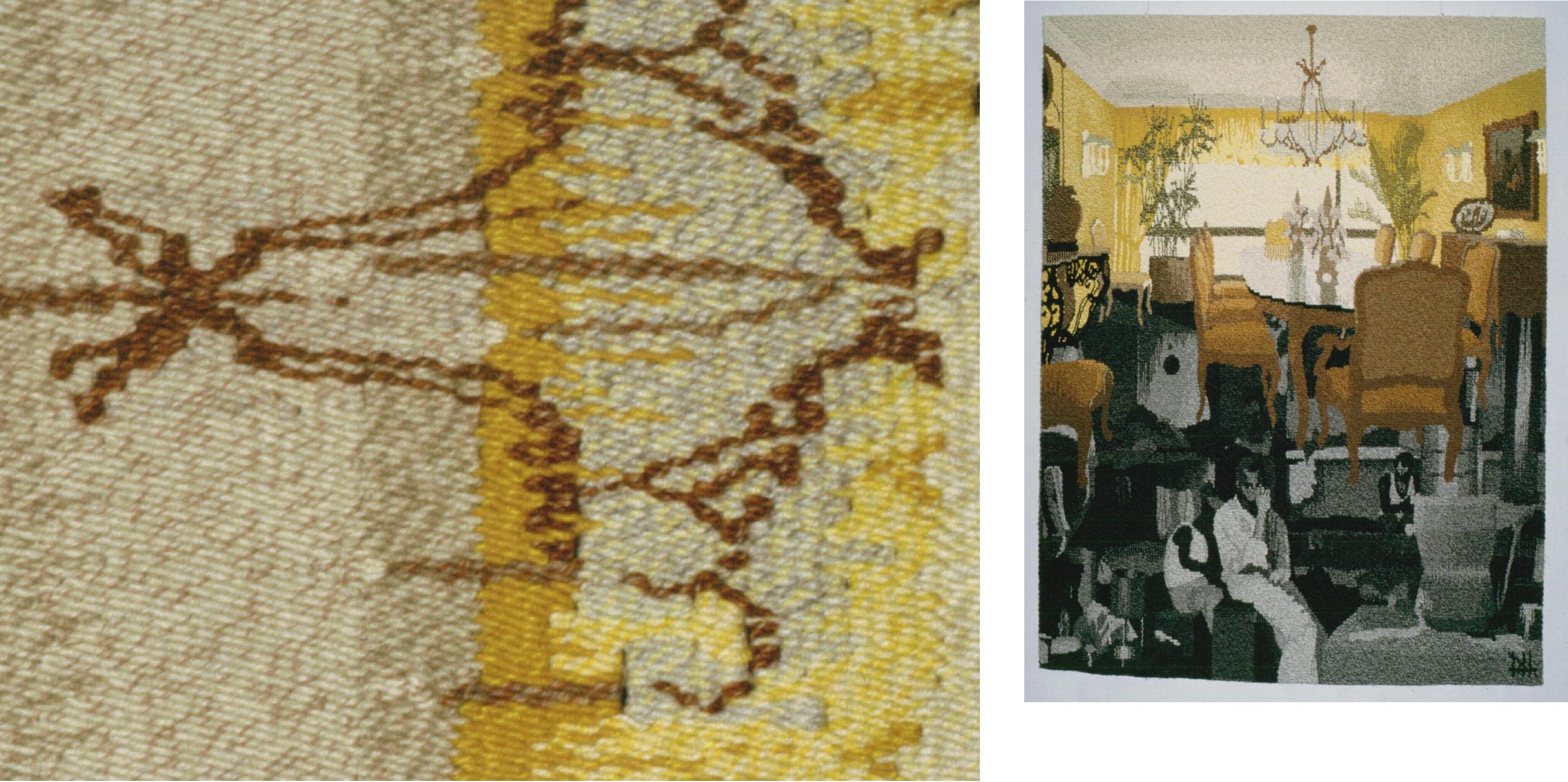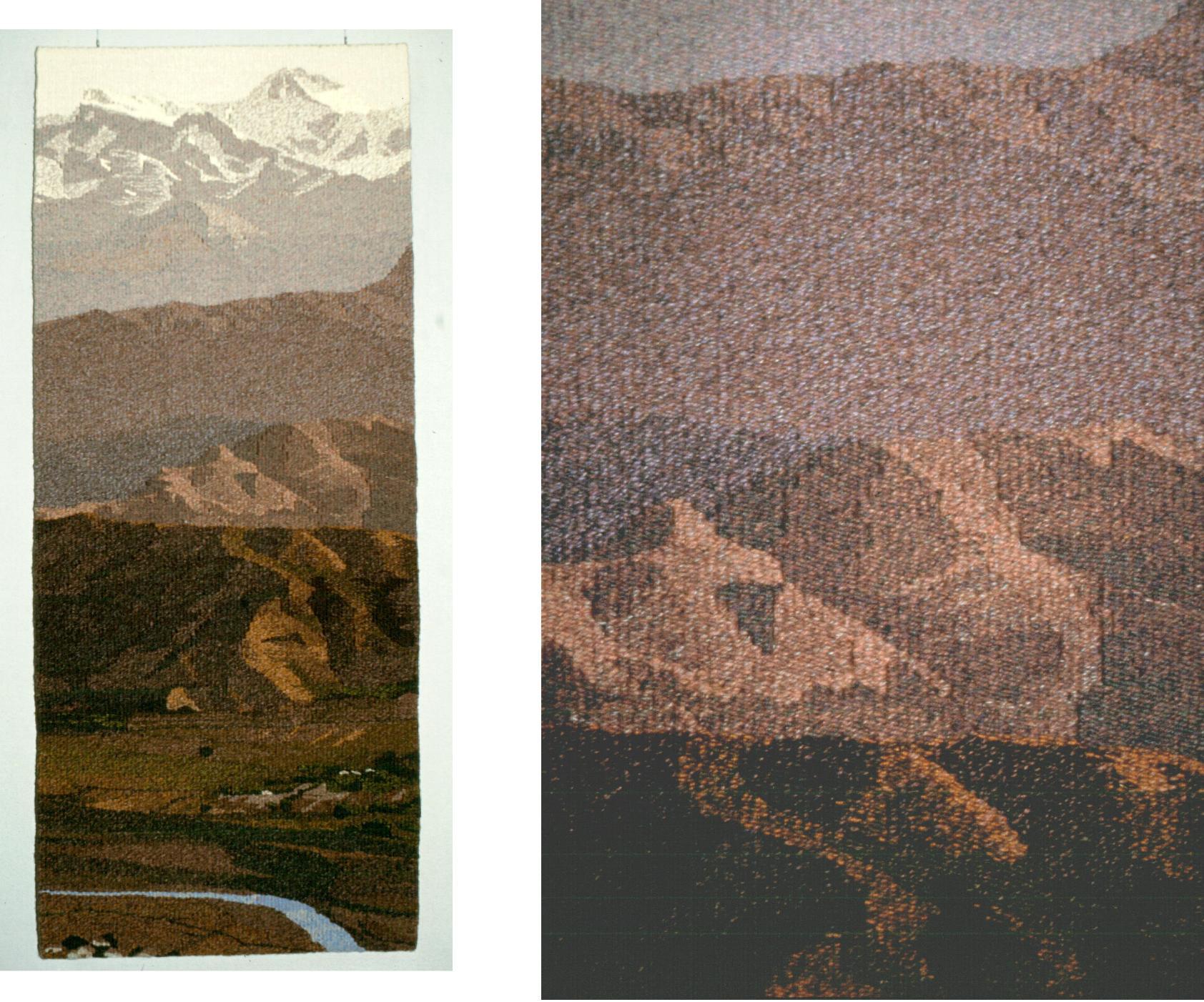 From my beginning days as a tapestryweaver, I appreciated the practice of combining various yarns in the weft to obtain exactly the hue and tone required. It appeared to follow the same familiar rules as for mixing paint colours, that all you require is three primary colours – red, yellow, and blue – with black and white for shades and tints. But the more experience I gained trying to weave pictorial subjects, the more I realized there were other phenomena at work – happening all the time, or prepared for particular effect.