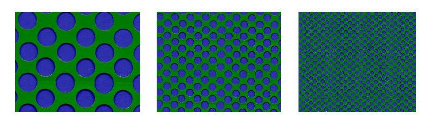 Here is a simple but surprisingly clear example, to view the effect of mixing adjacent hues. If I select a colour to simulate, and the two adjacent hues on each side, I have a range of five, enough to span from one primary to another. Leaving 3 alone, I exchange the screens between 2 and 4, also 1 and 5. They all give a somehow balanced impression of the colour of interest at 3; 2 and 4 are similar, convincing, and more vivid than 3; at 1 and 5 the more divergent hues and their light/dark contrast become more distracting (I learned to call this “razzle-dazzle” – the effect of yarn colours so contrasting, it’s more sparkle or noise than blending). In practice, there can be more than two yarns in the weft: highlights and accents of a range of hues and light/dark tones, probably anchored by the best available mid-range choice.
